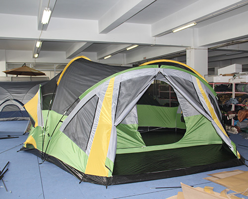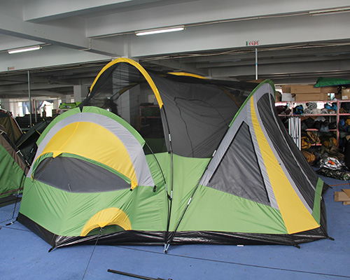 尺寸:488×427×198cm 外帐:185T 涤塔夫 PU600防水涂层 贴条 阻燃 内帐:185T PU600防水涂层 阻燃 网纱:68×68 底部:120g PE底部 杆子:¢12.5mm玻纤杆 外袋:150D 牛津布 PU450mm 另配有拉绳和地钉