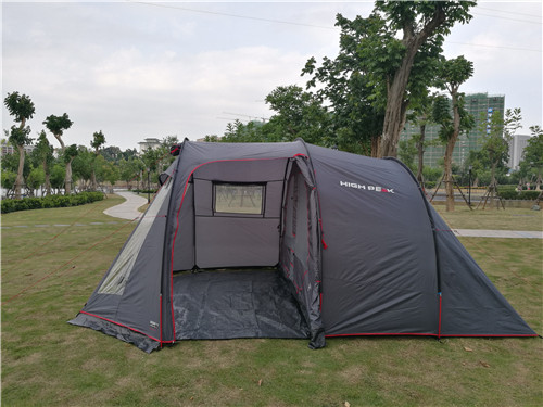 尺寸:250+215x320x200cm 内帐:210x120+180x185/165cm 外账:190 T 68D 涤纶 PU 3000mm 贴条 内帐:180T 63D 涤纶透气布 地席:PE 120g 玻纤杆:Dia 11mm 玻纤 外袋:全 拉链外袋